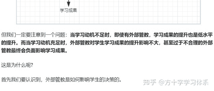 但我们一定要注意到一个问题:当学习动机不足时,即使有外部管教(注意,此处是管教,而非管理。管教是管理的手段之一,但并非唯一手段),学习成果的提升也是低水平的提升。而当学习动机充足时,外部管教对学生学习成果的提升影响不大,甚至过于不合理的外部管教最终会负面影响学习成果。