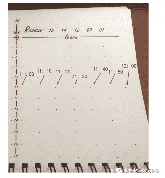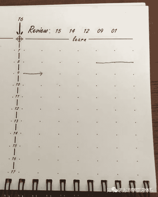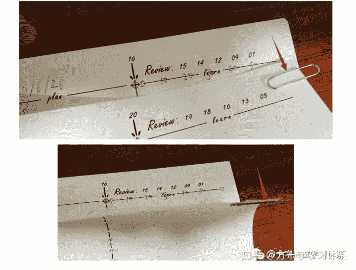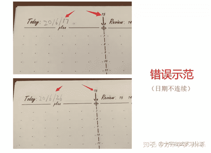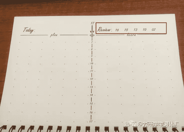 注意,日期需要连续记录,不得中断。即使某几天没有学习,学习记录为空,也需要将日期记录在对应页中。否则会造成后续的复习出现混乱。