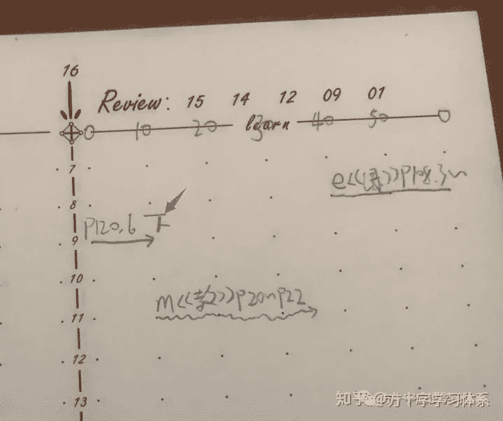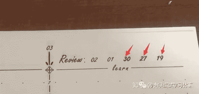 直箭线上为新知识的学习记录,波浪箭线上为复习记录。