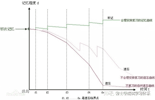 若想实现长期记忆,目前公认的一个方式为:首次学习后,在第1天,第2天,第4天,第7天,第15天对相关的知识内容进行有效的复习。